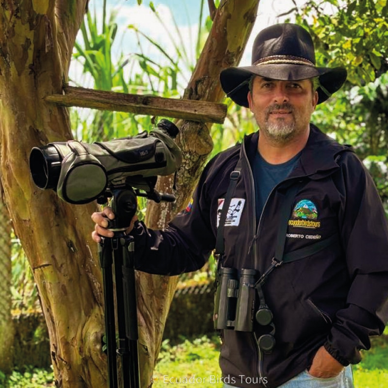 Roberto has over 35 years of experience as a professional guide specializing in birds, guiding in Ecuador, Colombia, Peru, Brazil, and Mexico. He works throughout Ecuador, particularly with groups interested in nature. His hobbies are birds and horses, as well as enjoying time with family and travelling to all the hidden cornes that Ecuador offers—its food, its customs, and its traditions.