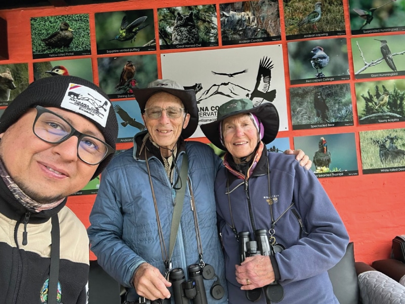 “We enjoyed 12 days with Ecuador Bird Tours and found the trip we did excellent. Our guides were very knowledgeable and capable with great eyes and ears ! They quickly identified what we were seeing and pointed out the unusual birds from the regular species. They went out of their way to find some species and helped us get great photos. Our driver was very respectful and careful on the roads, we felt very safe. The lodges we stayed in were lovely with good rooms and we ate very well. There is a very new and special condor observation site in Antisana that we enjoyed”. Richard and Pat Morris, Canada