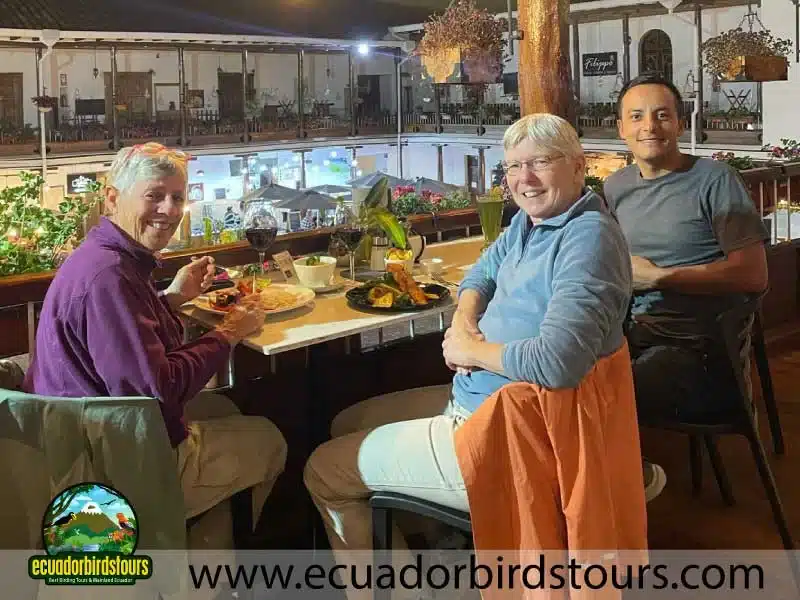 “You will be one of the family as soon as you start your conversations with Ecuador Birds Tours. We went for 10 days of birdwatching and 5 days in Galapagos. Ecuador Birds Tours was outstanding every minute of every day. The staff was attentive without being intimidating, the service was top-notch, the birder guides were well-informed and expert, always willing to go the extra mile to make sure you had a wonderful experience. We visited several of the family’s reserves and birding lodges and they were all outstanding and dedicated to warm hospitality, great birding experiences and the preservation and conservation of the ecosystem of the Eastern and Western slopes of the Andes. Our only regret was that our time was so short. Would recommend Ecuador Birds Tours to anyone thinking about a birding trip to South America” Pari and Charles.